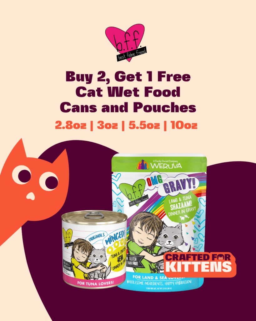 Stock up on BFF’s beloved cat food with Buy 2, Get 1 Free promotion. With a variety of textures and proteins, there’s something for every feline palate.