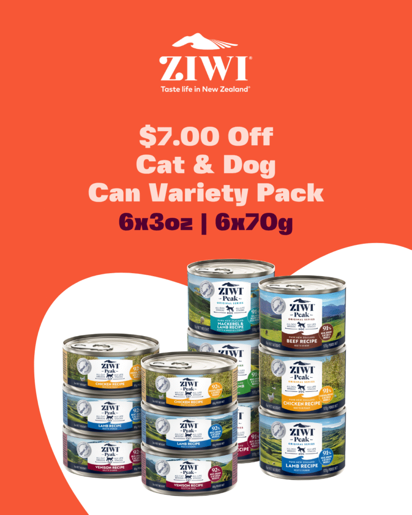 Ziwi – $7 Off Cat & Dog Can Variety Packs.